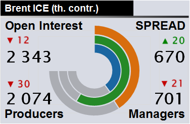 За прошлую неделю разница между OI производителей и OI управляющих сократилась на 57 367 контрактов. Разница между длинными позициями производителей и управляющих сократилась на 23 055 контрактов. Разница между короткими позициями производителей и управляющих сократилась на 23 339 контрактов.