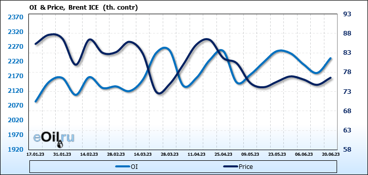 WTI. Открытый интерес на 24 июня 2023