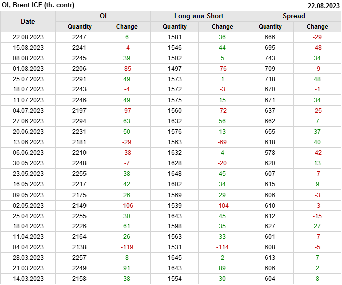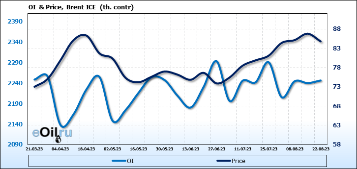 Brent. Открытый интерес на 26 августа 2023