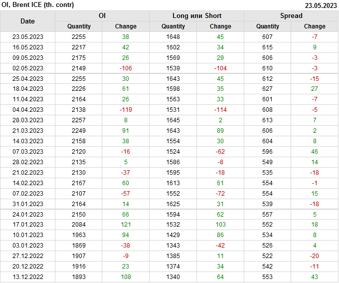 Brent. Открытый интерес на 27 мая 2023