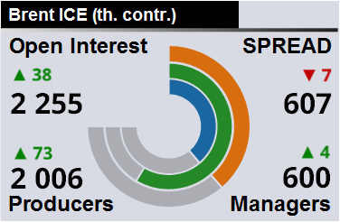 За прошлую неделю разница между OI производителей и OI управляющих выросла на 53 966 контрактов. Разница между длинными позициями производителей и управляющих сократилась на 15 923 контракта. Разница между короткими позициями производителей и управляющих выросла на 35 061 контракт.
