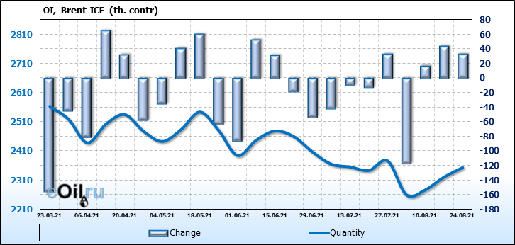 Brent. Открытый интерес на 28 августа 2021