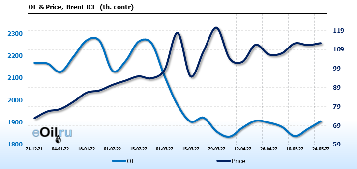 За прошедшую неделю, 18.05.22 — 24.05.22, открытый интерес вырос на 35 тыс. контрактов. Объем вовлеченных в торговлю контрактов составляет 1 905 789 штук. Текущее положение дел на рынке таково, что деньги в течение прошлой недели приходили на рынок поддерживая тенденцию.