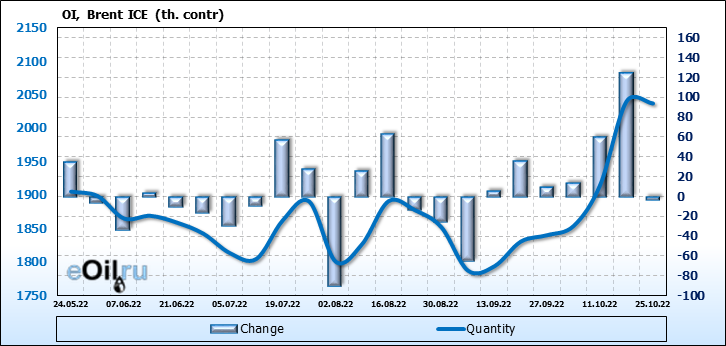 За прошедшую неделю, 19.10.22 — 25.10.22, открытый интерес упал на 3 тыс. контрактов. Объем вовлеченных в торговлю контрактов составляет 2 037 014 штук. Текущее положение дел на рынке таково, что деньги в течение прошлой недели уходили с рынка не видя привлекательности в текущей ситуации.