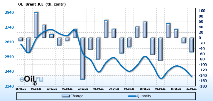 Brent. Открытый интерес на 3 июля 2021