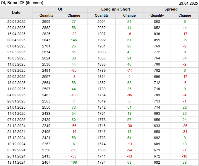 Brent. Открытый интерес на 3 мая 2025