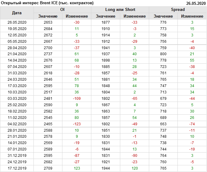 Brent. Открытый интерес на 30 мая 2020