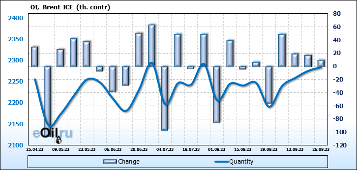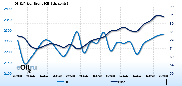За прошедшую неделю, 20.09.23 — 26.09.23, открытый интерес вырос на 9 тыс. контрактов. Объем вовлеченных в торговлю контрактов составляет 2 283 845 штук. Текущее положение дел на рынке таково, что деньги в течение прошлой недели приходили на рынок поддерживая тенденцию.