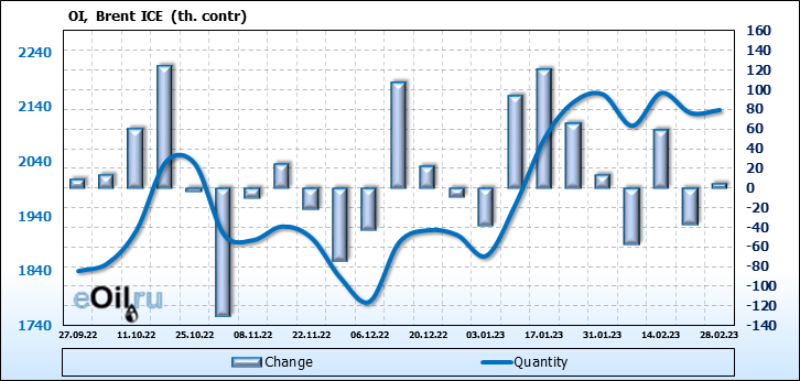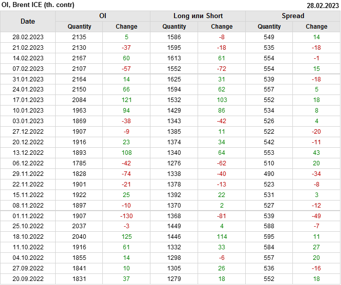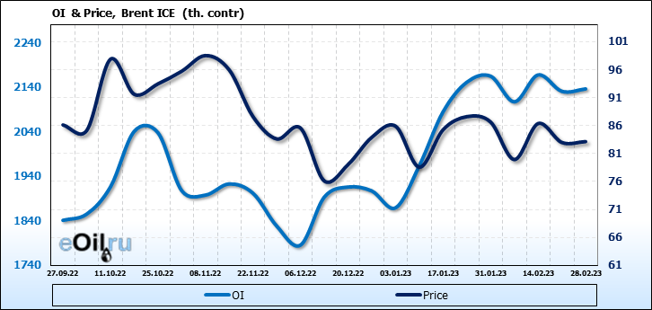 За прошедшую неделю, 22.02.23 — 28.02.23, открытый интерес вырос на 5 тыс. контрактов. Объем вовлеченных в торговлю контрактов составляет 2 135 487 штук. Текущее положение дел на рынке таково, что деньги в течение прошлой недели приходили на рынок поддерживая тенденцию.