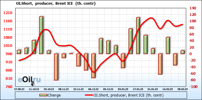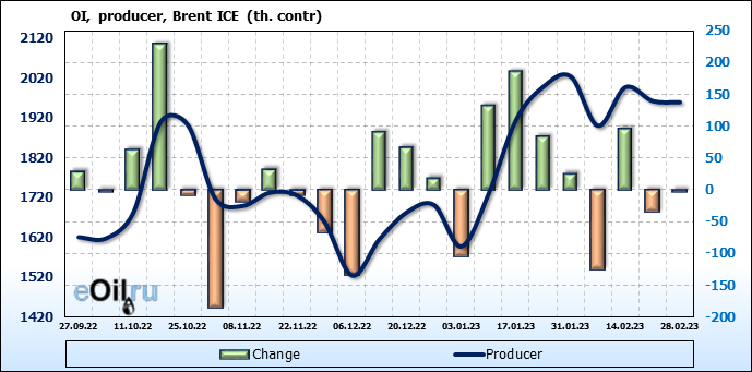 За неделю разница между длинными и короткими позициями производителей увеличилась на 23.4 тыс. контрактов.