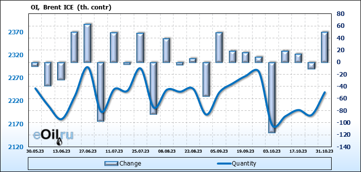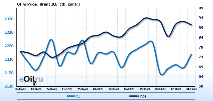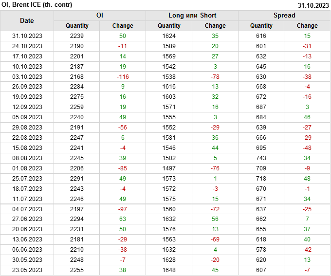 За прошедшую неделю, 25.10.23 — 31.10.23, открытый интерес вырос на 50 тыс. контрактов. Объем вовлеченных в торговлю контрактов составляет 2 239 499 штук. Текущее положение дел на рынке таково, что деньги в течение прошлой недели приходили на рынок поддерживая тенденцию.