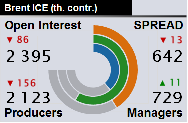 За прошлую неделю разница между OI производителей и OI управляющих сократилась на 64 731 контракт. Разница между длинными позициями производителей и управляющих сократилась на 58 387 контрактов. Разница между короткими позициями производителей и управляющих выросла на 18 490 контрактов.