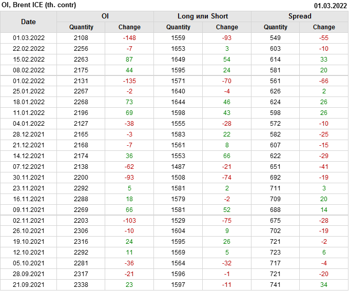 Brent. Открытый интерес на 5 марта 2022