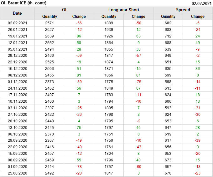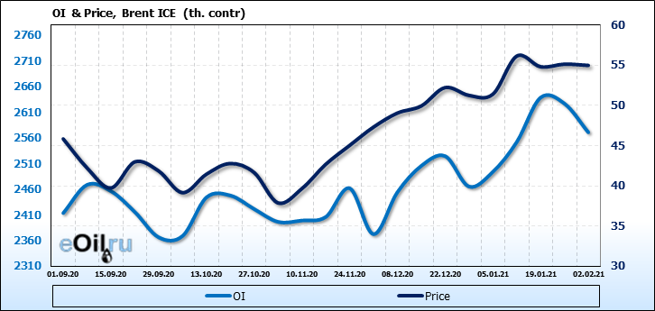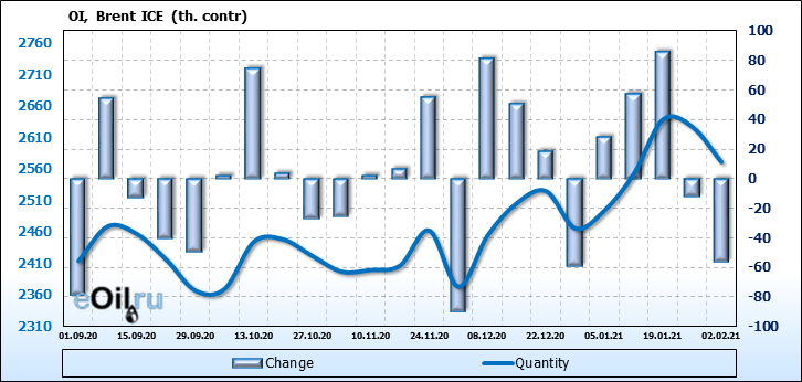 Brent. Открытый интерес на 6 февраля 2021