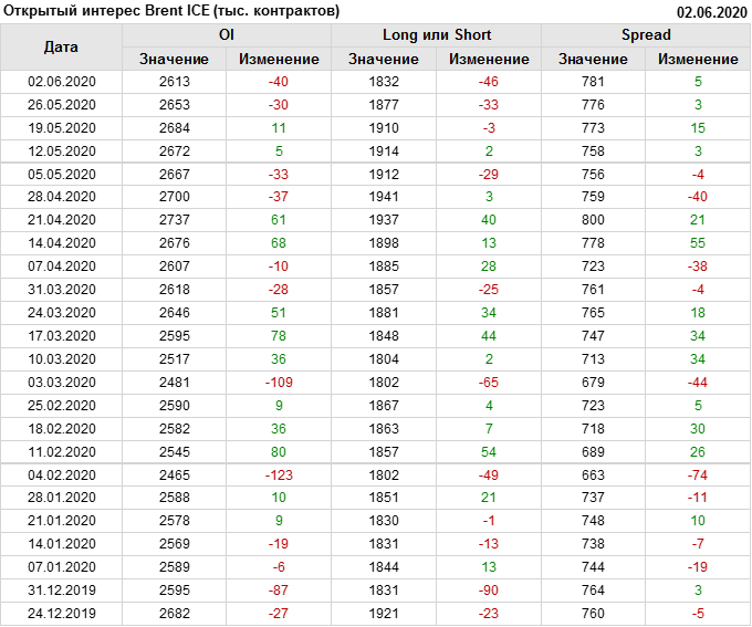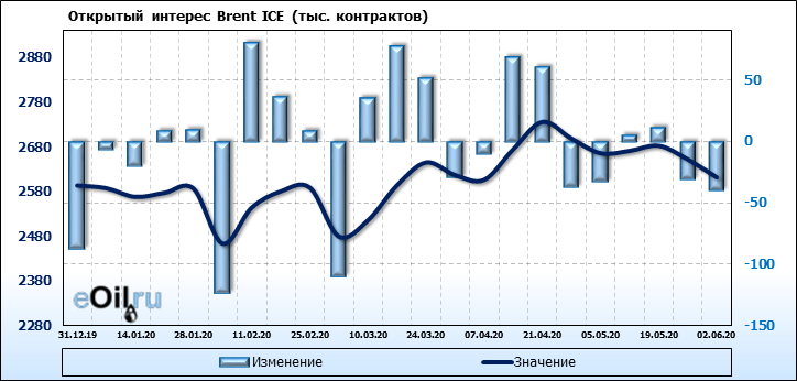 За прошлую неделю, 27.05.20 — 02.06.20, открытый интерес упал на 40 тыс. контрактов. Объем вовлеченных в торговлю контрактов составляет 2 612 922 штуки. Текущее положение дел на рынке таково, что деньги в течение прошлой недели уходили с рынка не видя привлекательности в текущей ситуации.