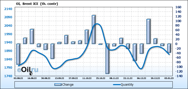 За прошедшую неделю, 28.12.22 — 03.01.23, открытый интерес упал на 38 тыс. контрактов. Объем вовлеченных в торговлю контрактов составляет 1 869 003 штуки. Текущее положение дел на рынке таково, что деньги в течение прошлой недели уходили с рынка не видя привлекательности в текущей ситуации.