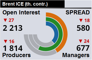 За прошлую неделю разница между OI производителей и OI управляющих сократилась на 19 224 контракта. Разница между длинными позициями производителей и управляющих сократилась на 31 323 контракта. Разница между короткими позициями производителей и управляющих выросла на 9 428 контрактов.