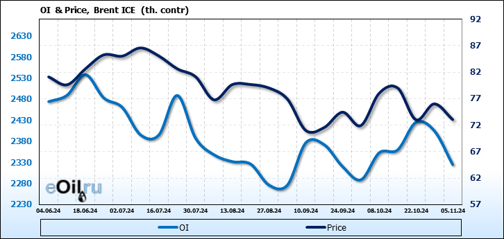 Brent. Открытый интерес на 9 ноября 2024