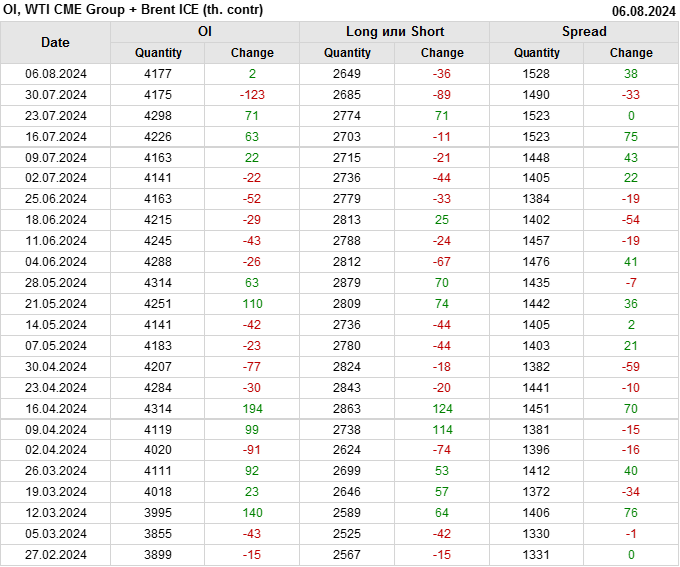 Brent+WTI. Открытый интерес на 10 августа 2024