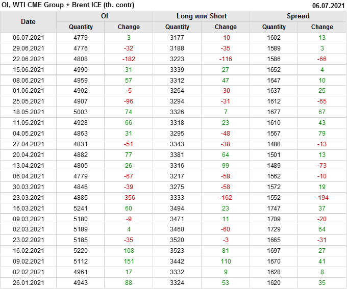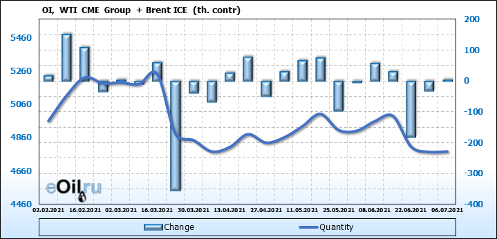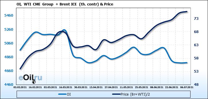 Brent+WTI. Открытый интерес на 10 июля 2021