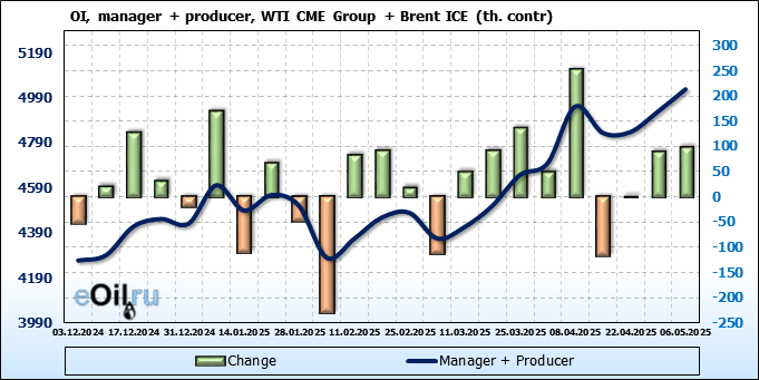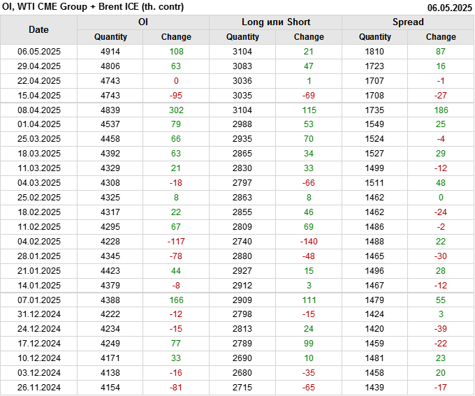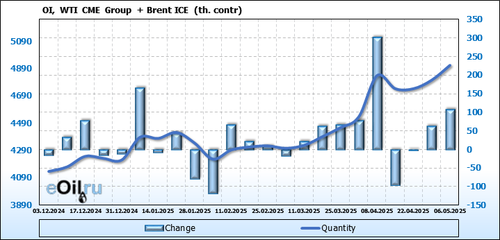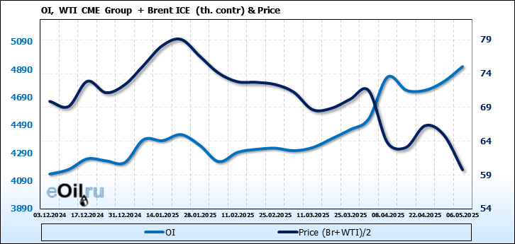 Brent+WTI. Открытый интерес на 10 мая 2025