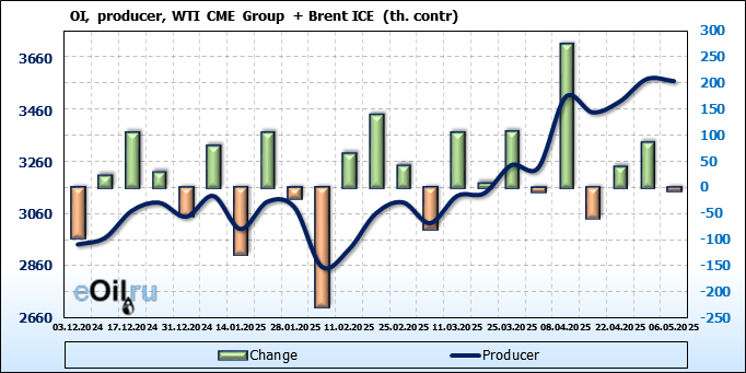 Открытый интерес производителей упал на 8 тыс. контрактов. Объем контрактов, направленных на хеджирование, составляет 3 576 663 штуки. Деньги производителей в течение прошлой недели уходили с рынка не видя привлекательности в текущей ситуации.