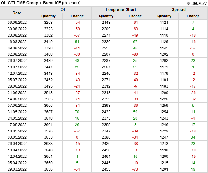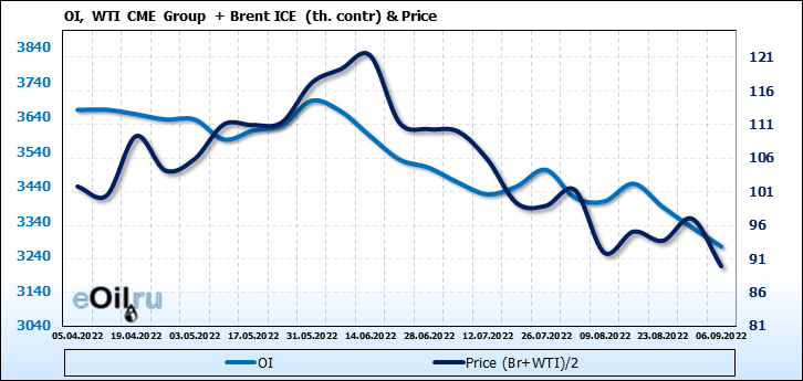 Brent+WTI. Открытый интерес на 10 сентября 2022