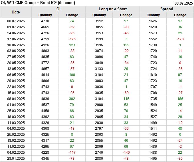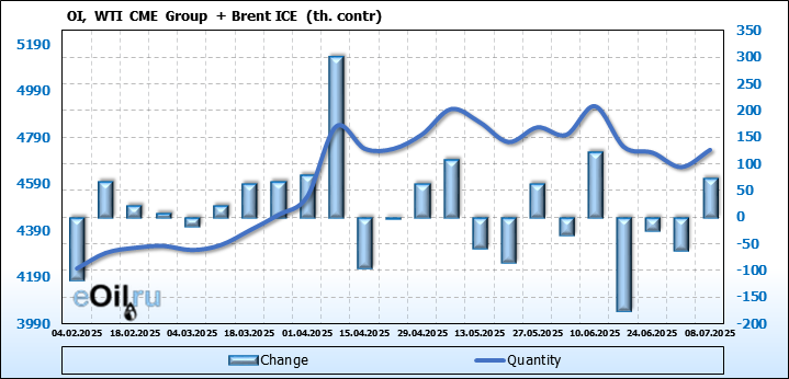 Brent+WTI. Открытый интерес на 11 июля 2025