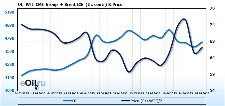 Brent+WTI. Открытый интерес на 11 июля 2025