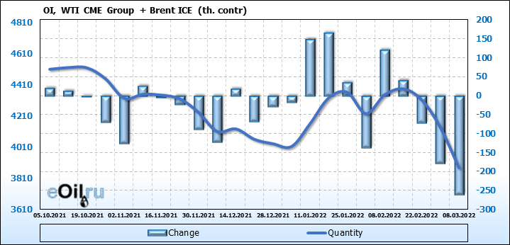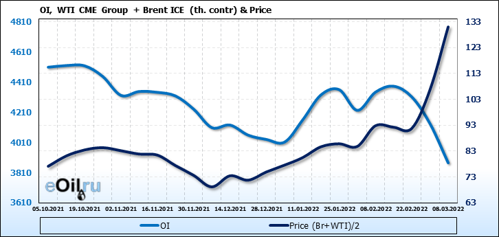 Brent+WTI. Открытый интерес на 12 марта 2022