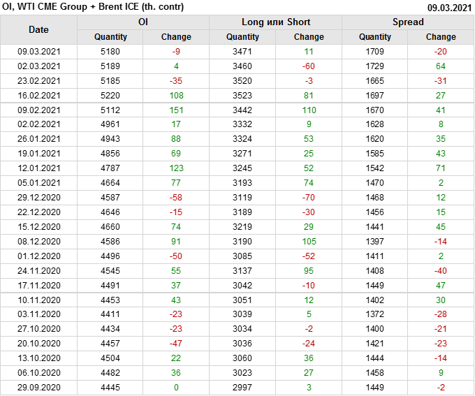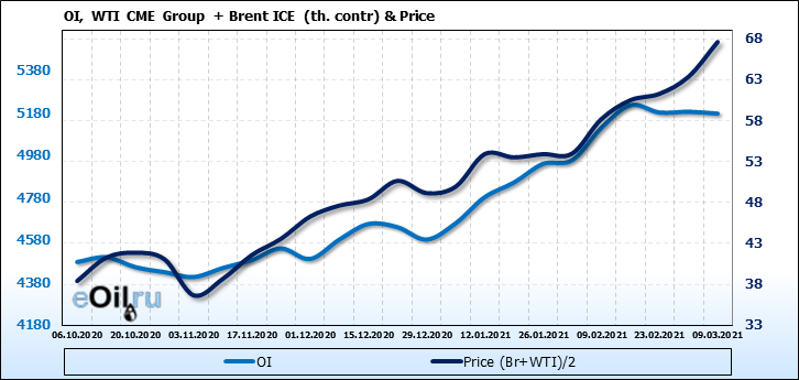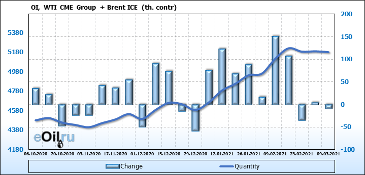 Brent+WTI. Открытый интерес на 13 марта 2021