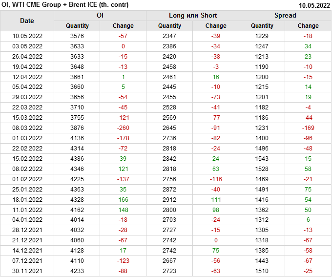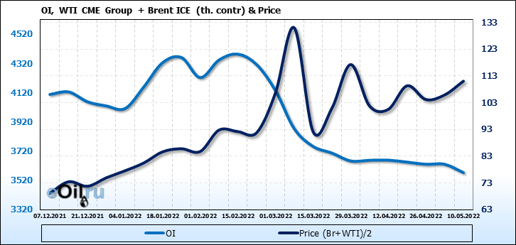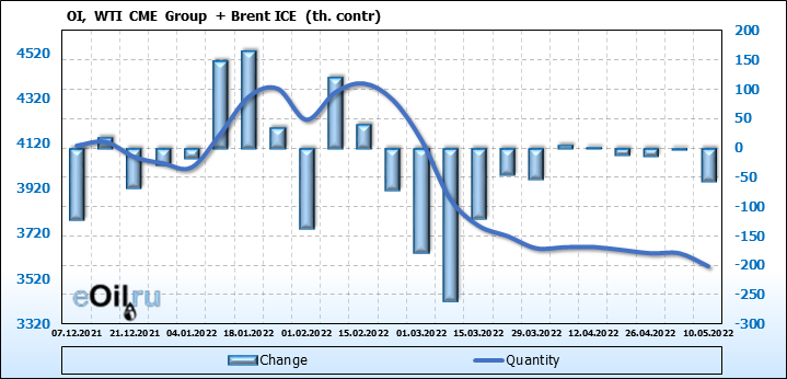 Brent+WTI. Открытый интерес на 14 мая 2022