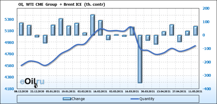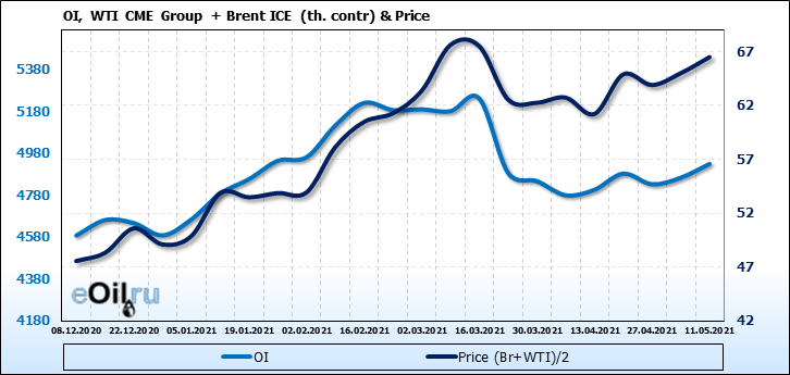 Brent+WTI. Открытый интерес на 15 мая 2021