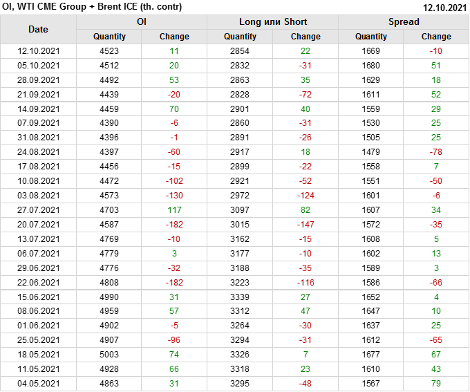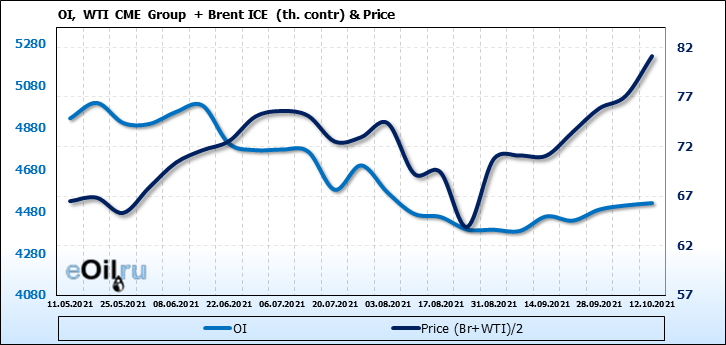 Brent+WTI. Открытый интерес на 16 октября 2021