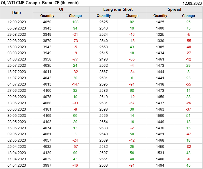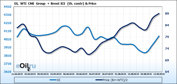 Brent+WTI. Открытый интерес на 16 сентября 2023