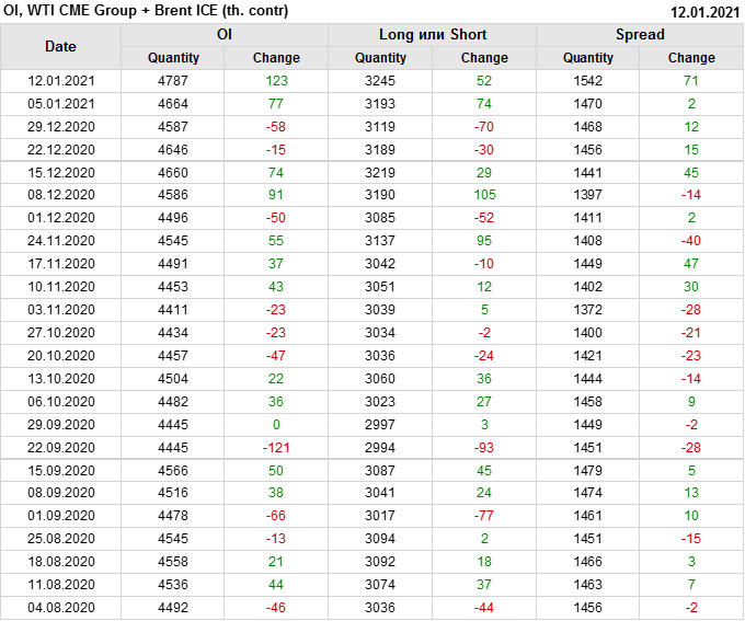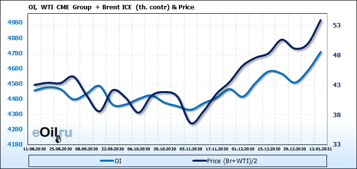 Brent+WTI. Открытый интерес на 16 января 2021