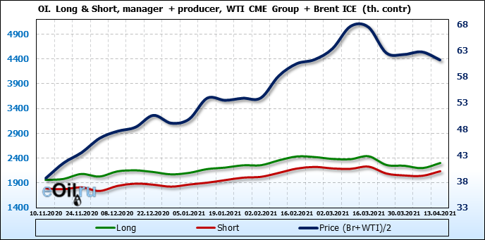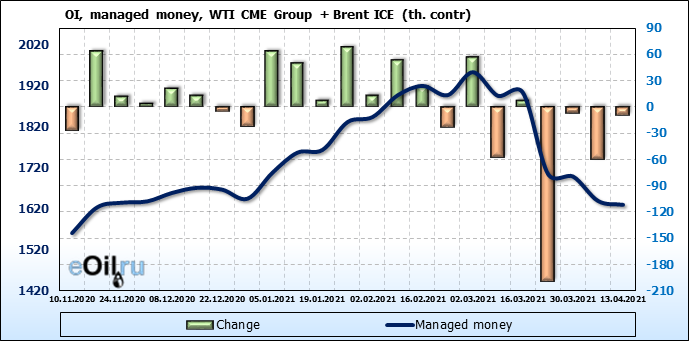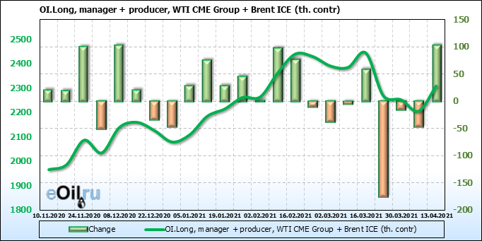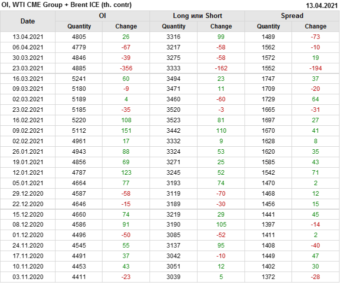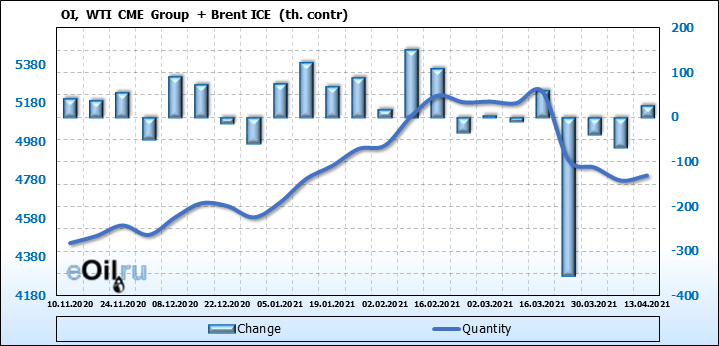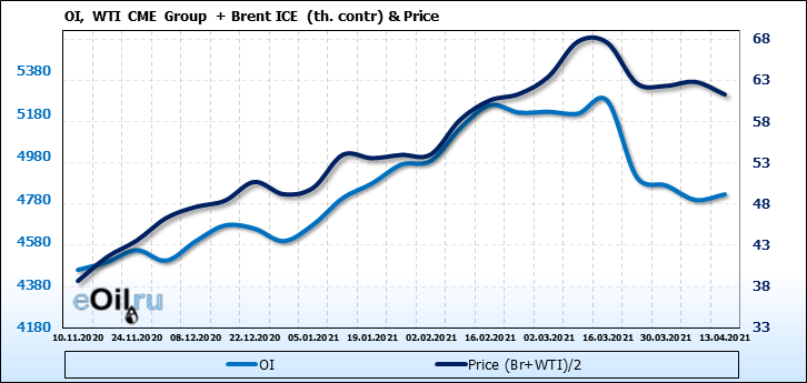 Brent+WTI. Открытый интерес на 17 апреля 2021