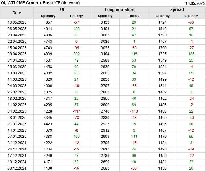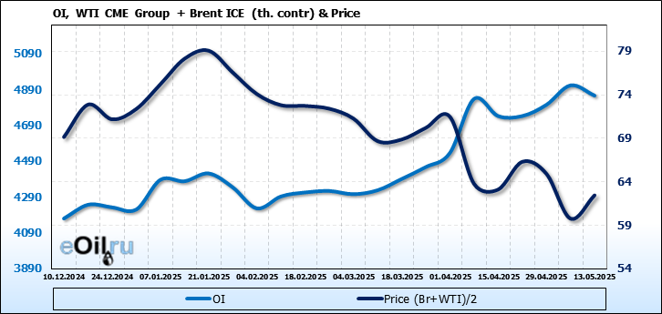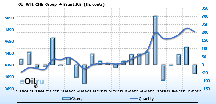 Brent+WTI. Открытый интерес на 17 мая 2025