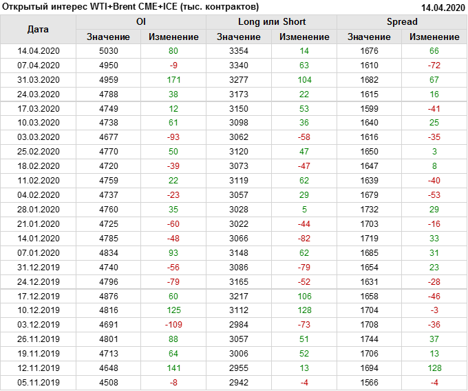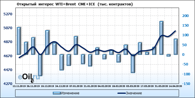 Brent+WTI. Открытый интерес на 18 апреля 2020