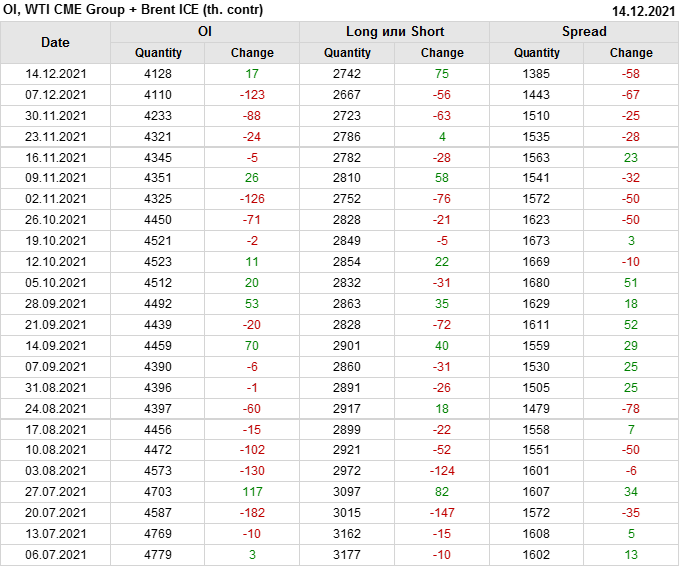 Brent+WTI. Открытый интерес на 18 декабря 2021