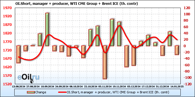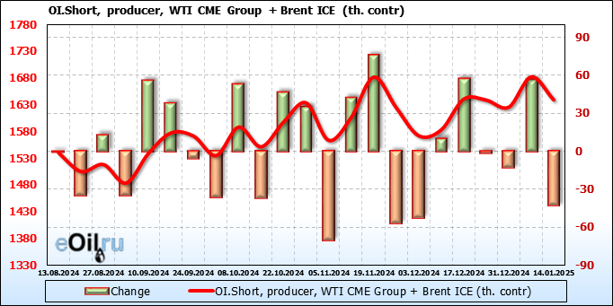 За неделю разница между длинными и короткими позициями производителей увеличилась на 42 тыс. контрактов.