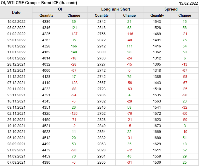 Brent+WTI. Открытый интерес на 19 февраля 2022
