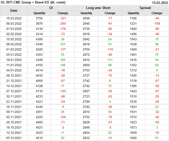 Brent+WTI. Открытый интерес на 19 марта 2022