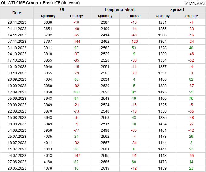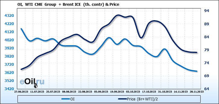 Brent+WTI. Открытый интерес на 2 декабря 2023