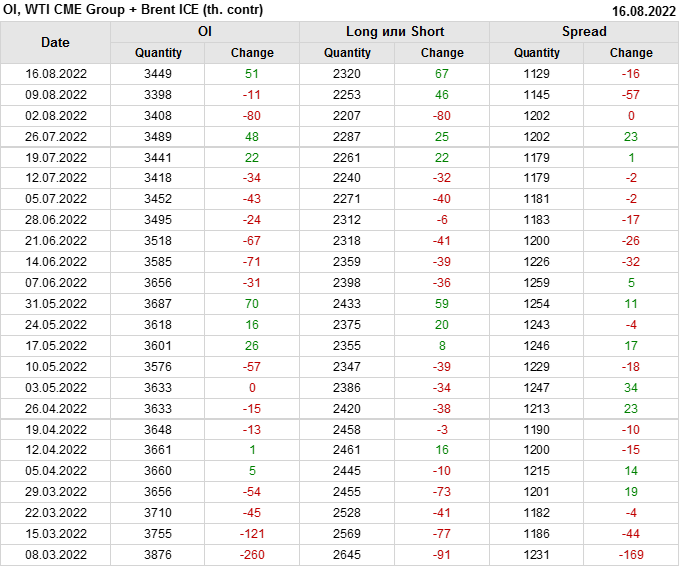 Brent+WTI. Открытый интерес на 20 августа 2022