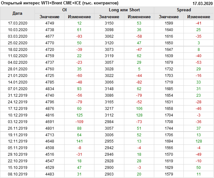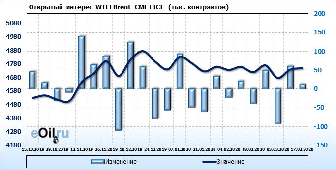Brent+WTI. Открытый интерес на 21 марта 2020