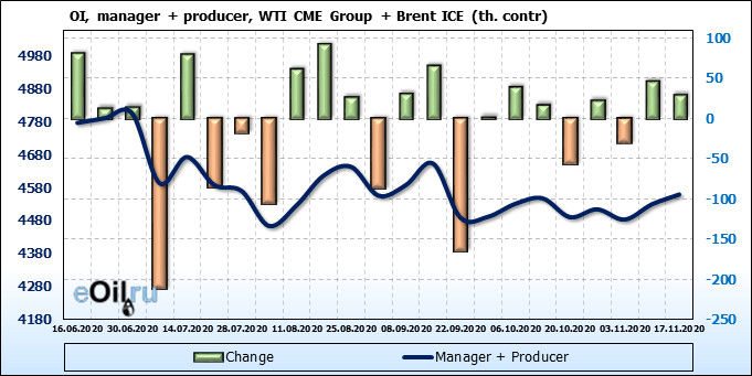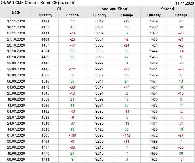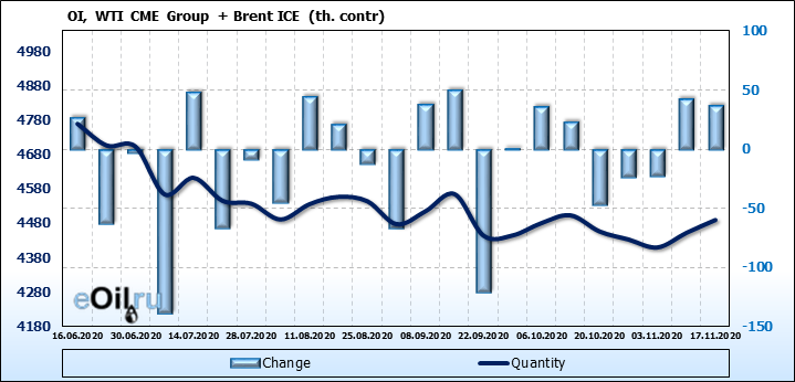 Brent+WTI. Открытый интерес на 21 ноября 2020