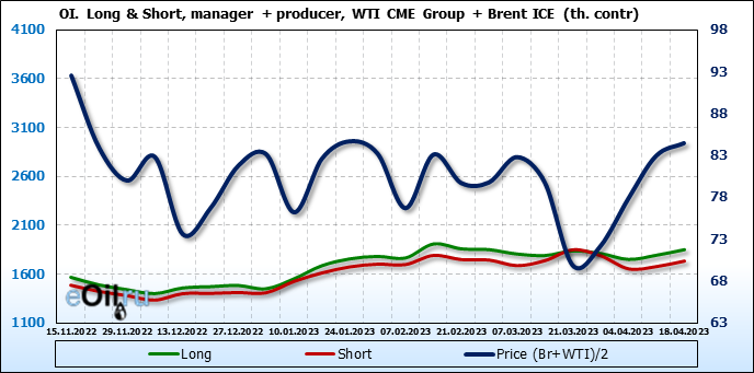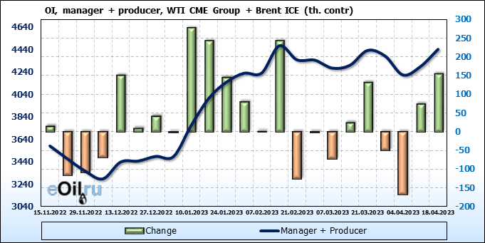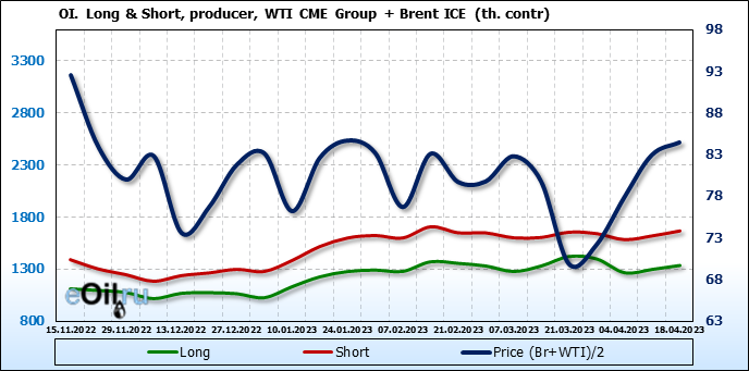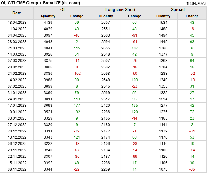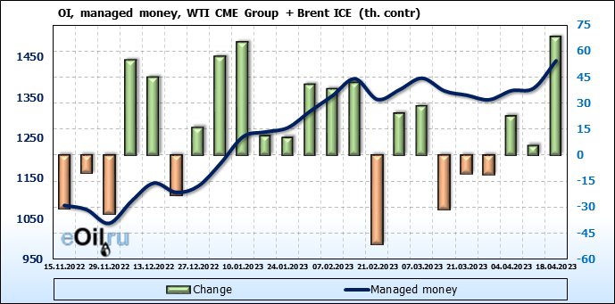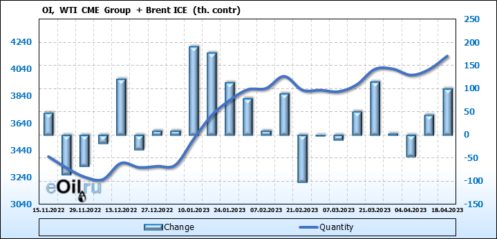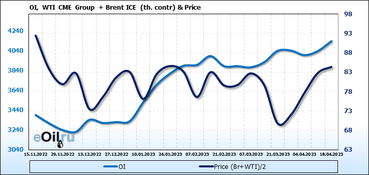 Brent+WTI. Открытый интерес на 22 апреля 2023