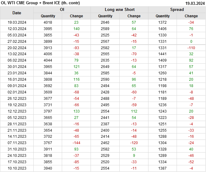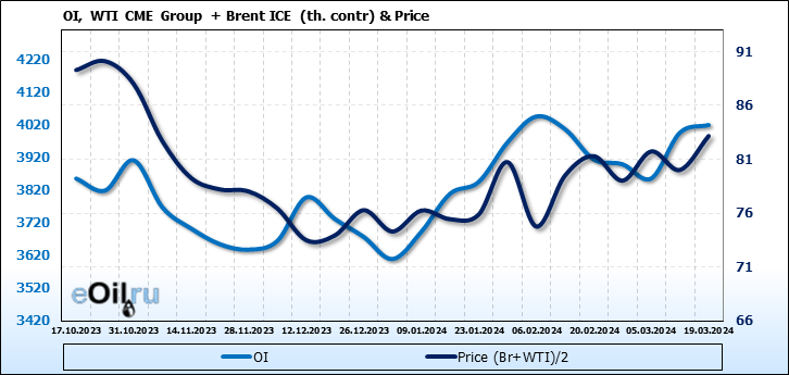 Brent+WTI. Открытый интерес на 23 марта 2024