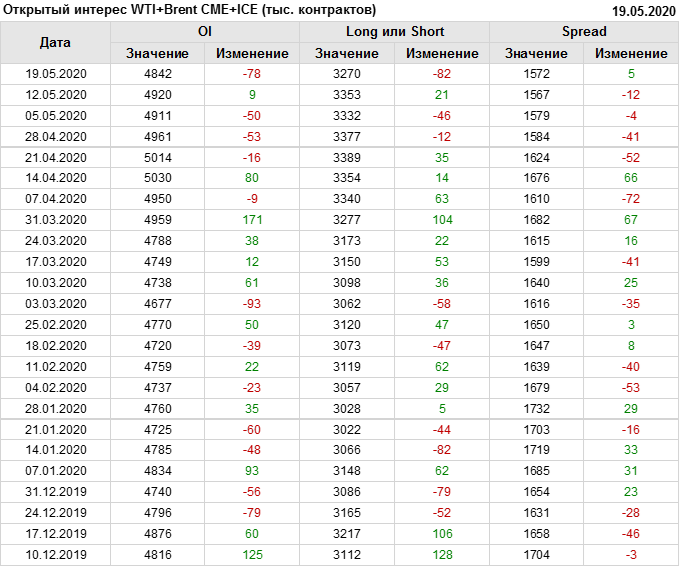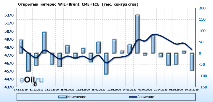 Brent+WTI. Открытый интерес на 23 мая 2020